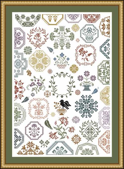 Stickndeen von der Wiehenburg offer Black Raven Quaker and Dutch Flower Quaker samplers. Botany Bay Sampler has worked it's way between these 2 samplers.